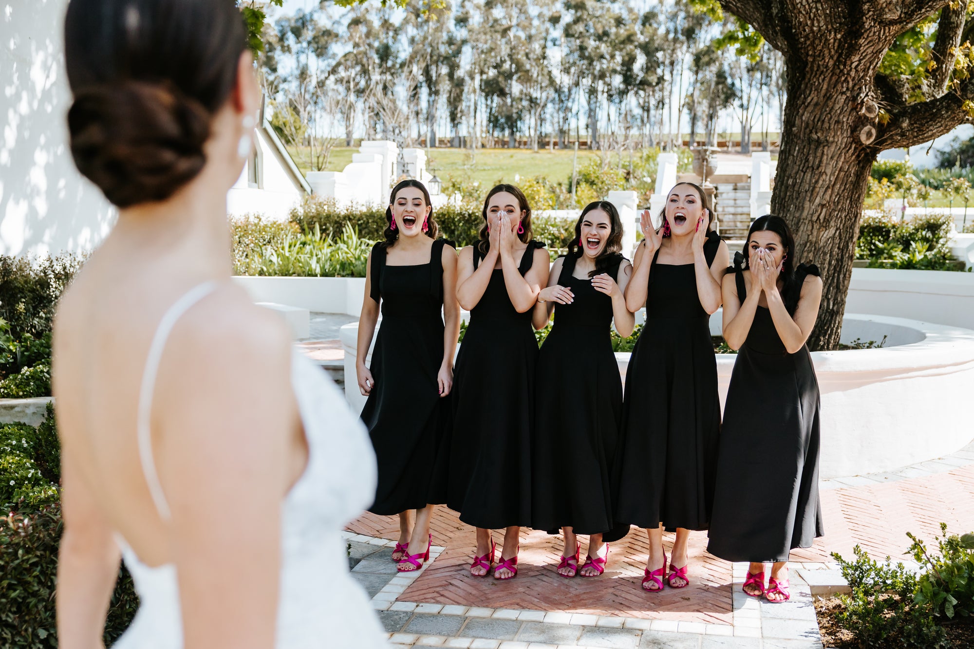 Whether styled with vibrant florals, statement shoes, or soft neutral accessories, the Kim Dress adapts to any theme. Bridesmaids can elevate the look with colour, texture, or minimal accents, making it suitable for fashion-forward weddings and timeless classics alike. This flexibility gives each member of the wedding party their own sense of style within a unified aesthetic.