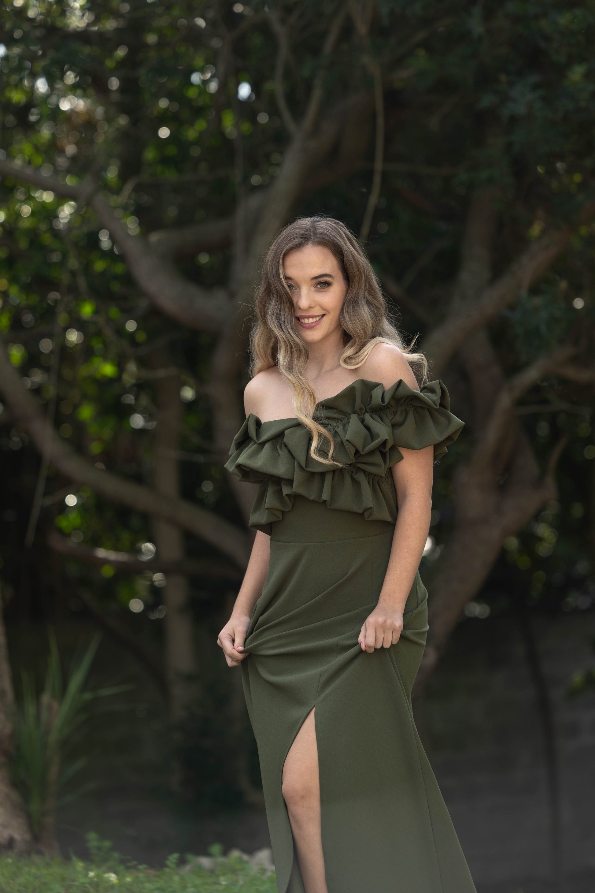 The Bella Dress is where timeless elegance meets modern sophistication. Designed with an off-shoulder neckline and dramatic ruffle detailing, it’s a piece that instantly captures attention while remaining effortlessly chic.
