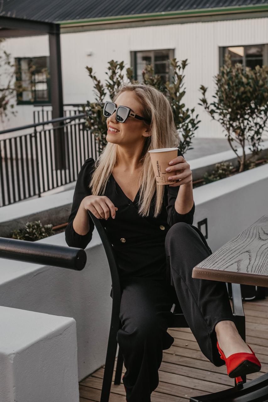 With its tailored fit and structured long sleeves, this jumpsuit blends elegance with modern edge. The gold button detailing adds a subtle hint of luxury.