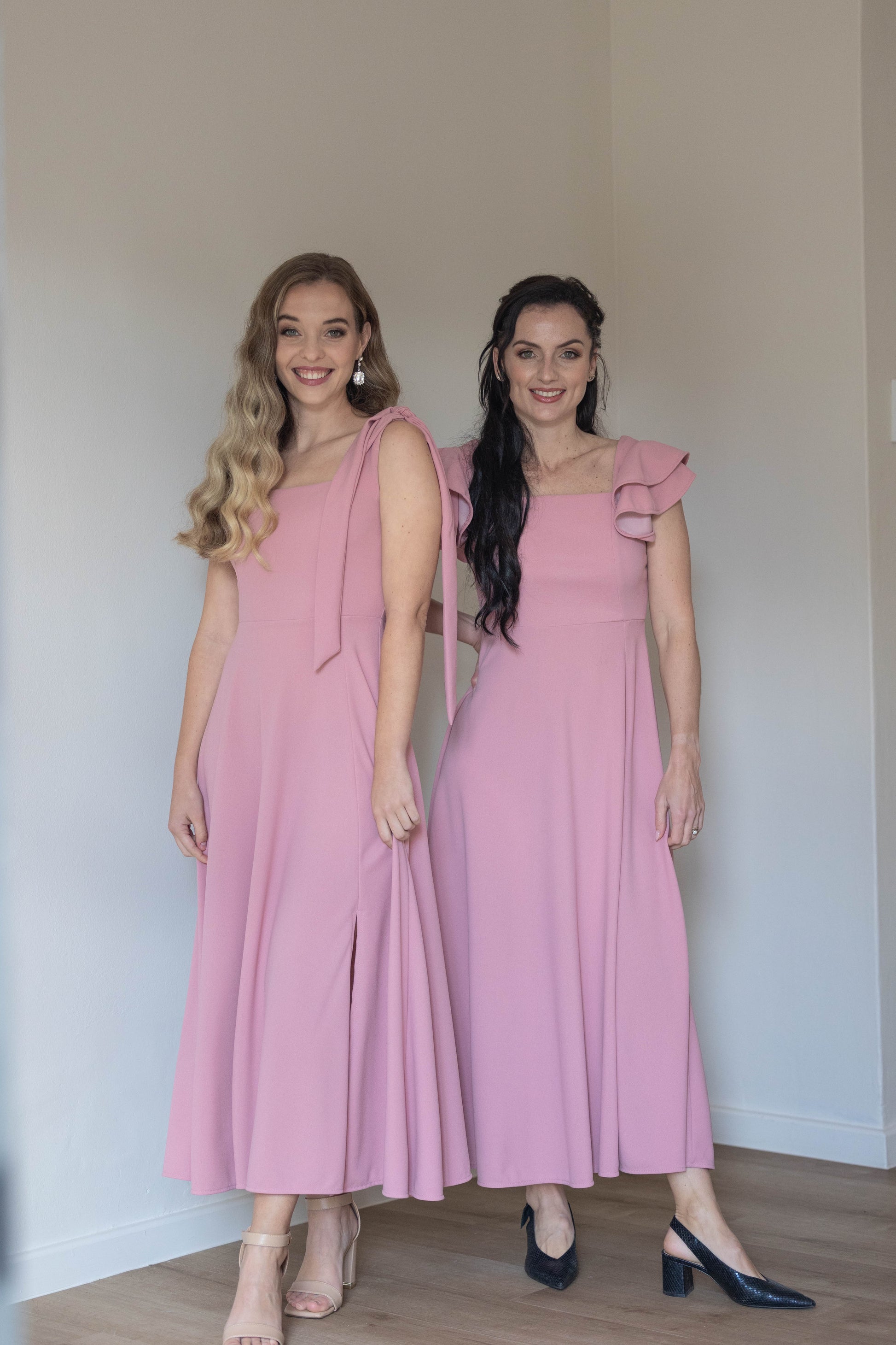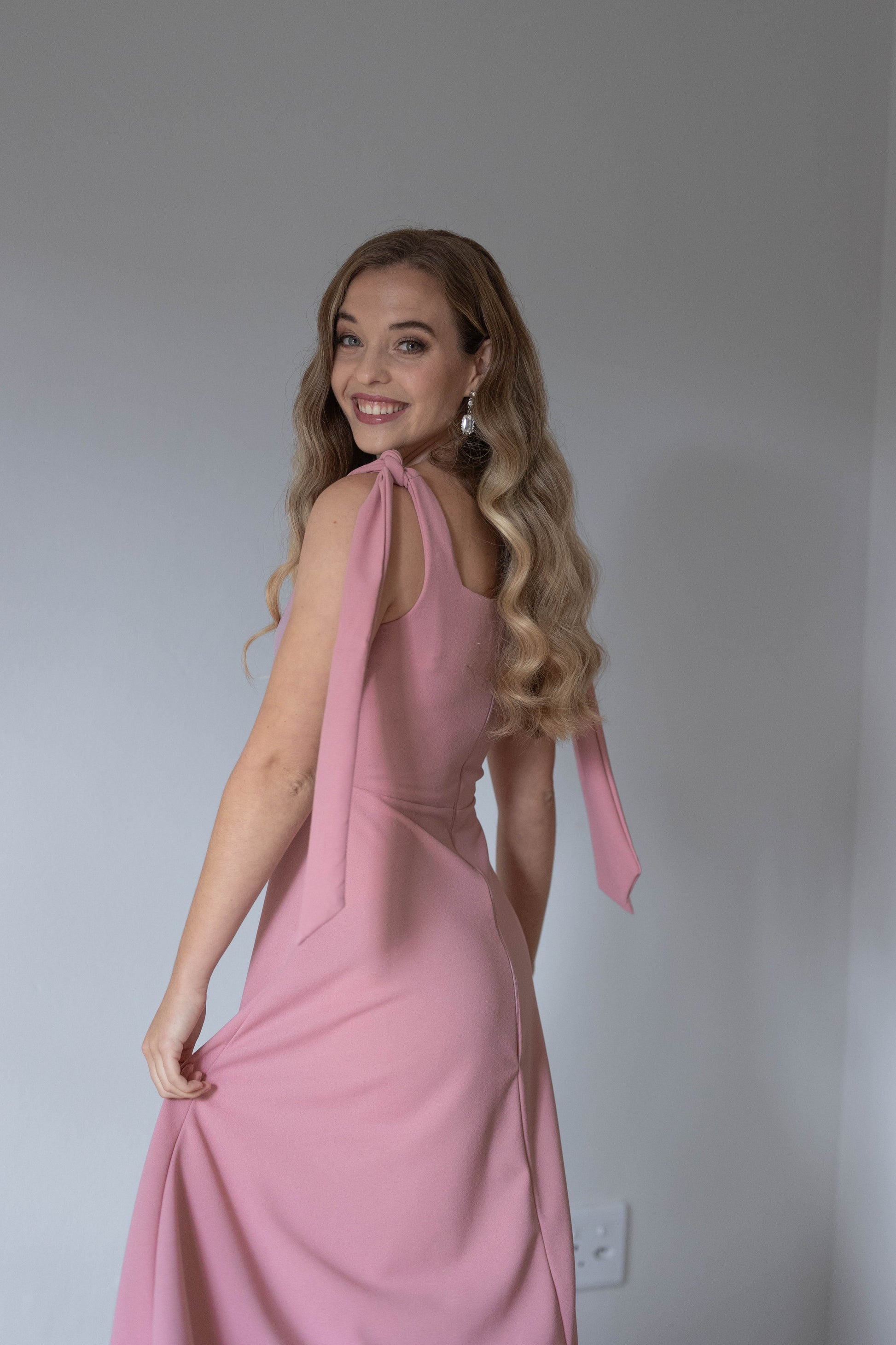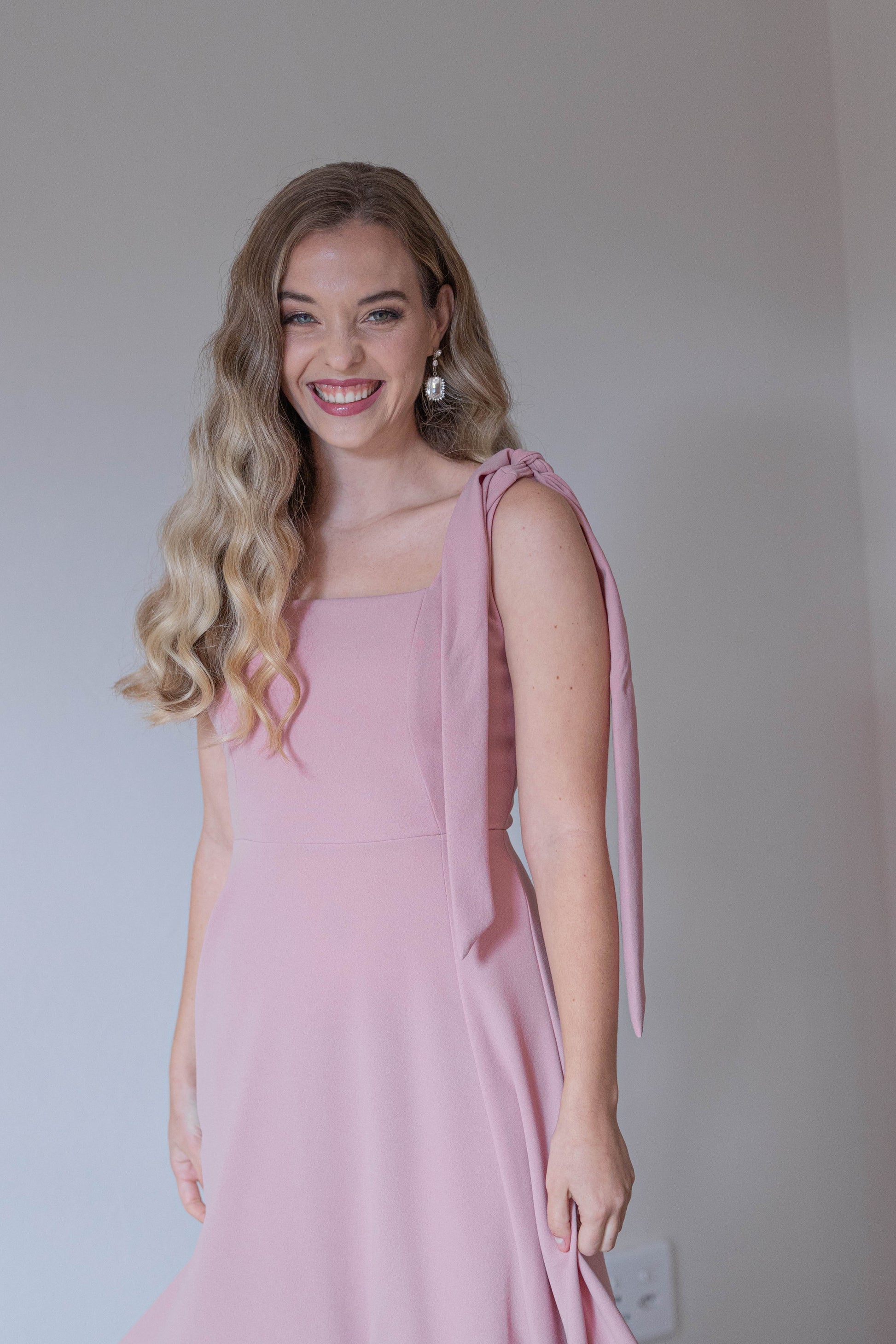 Featuring a sleeveless cut with delicate tie details on the shoulders, the Kim Dress flows beautifully to a midi length, making it an ideal choice for both day and evening events.