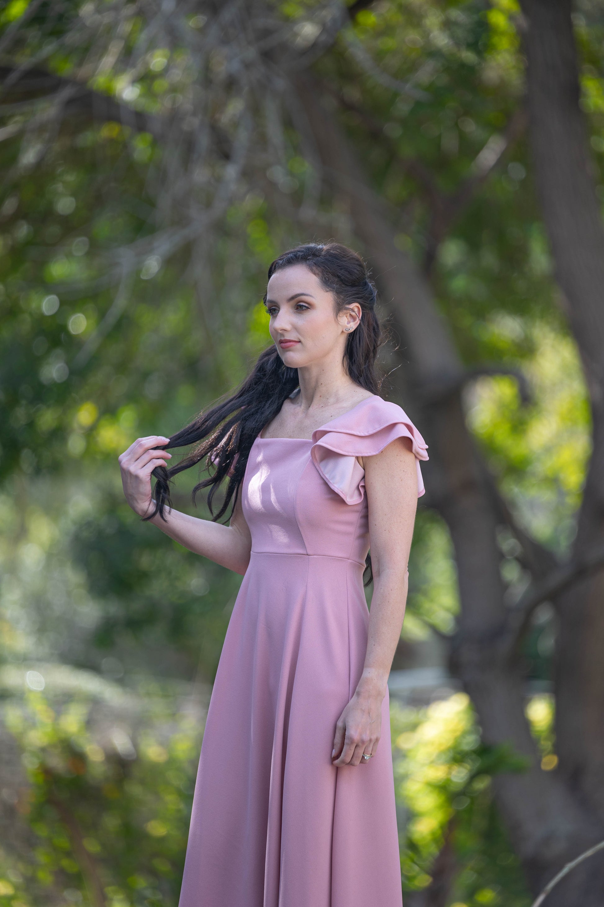 The Kimberley Dress blends feminine charm with graceful sophistication, making it a versatile piece for both daytime celebrations and evening occasions.