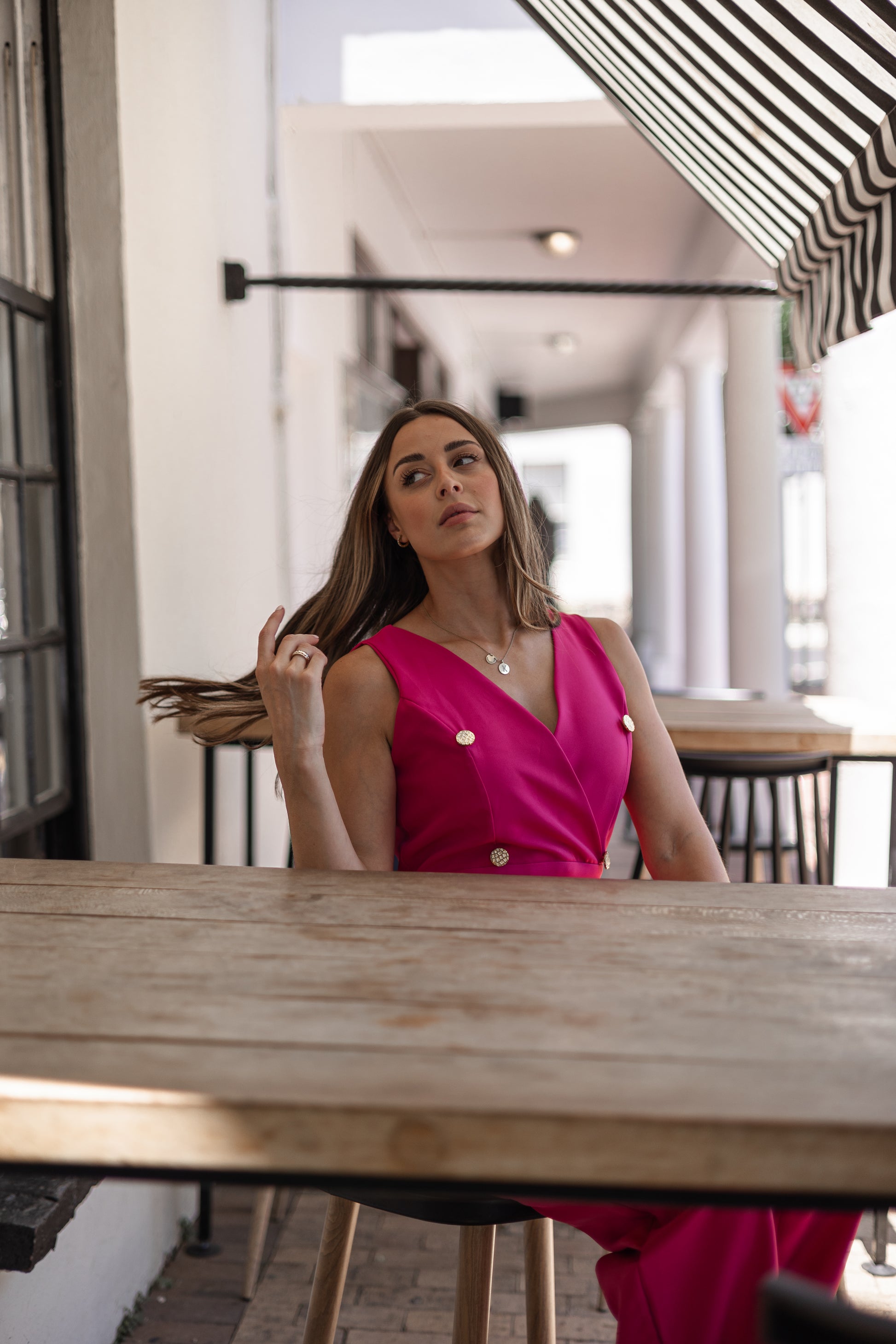The Kris Jumpsuit in Cherise Pink is all about effortless confidence and striking style. With its eye-catching shade and chic tailoring, it’s a look that makes a statement the moment you walk in.