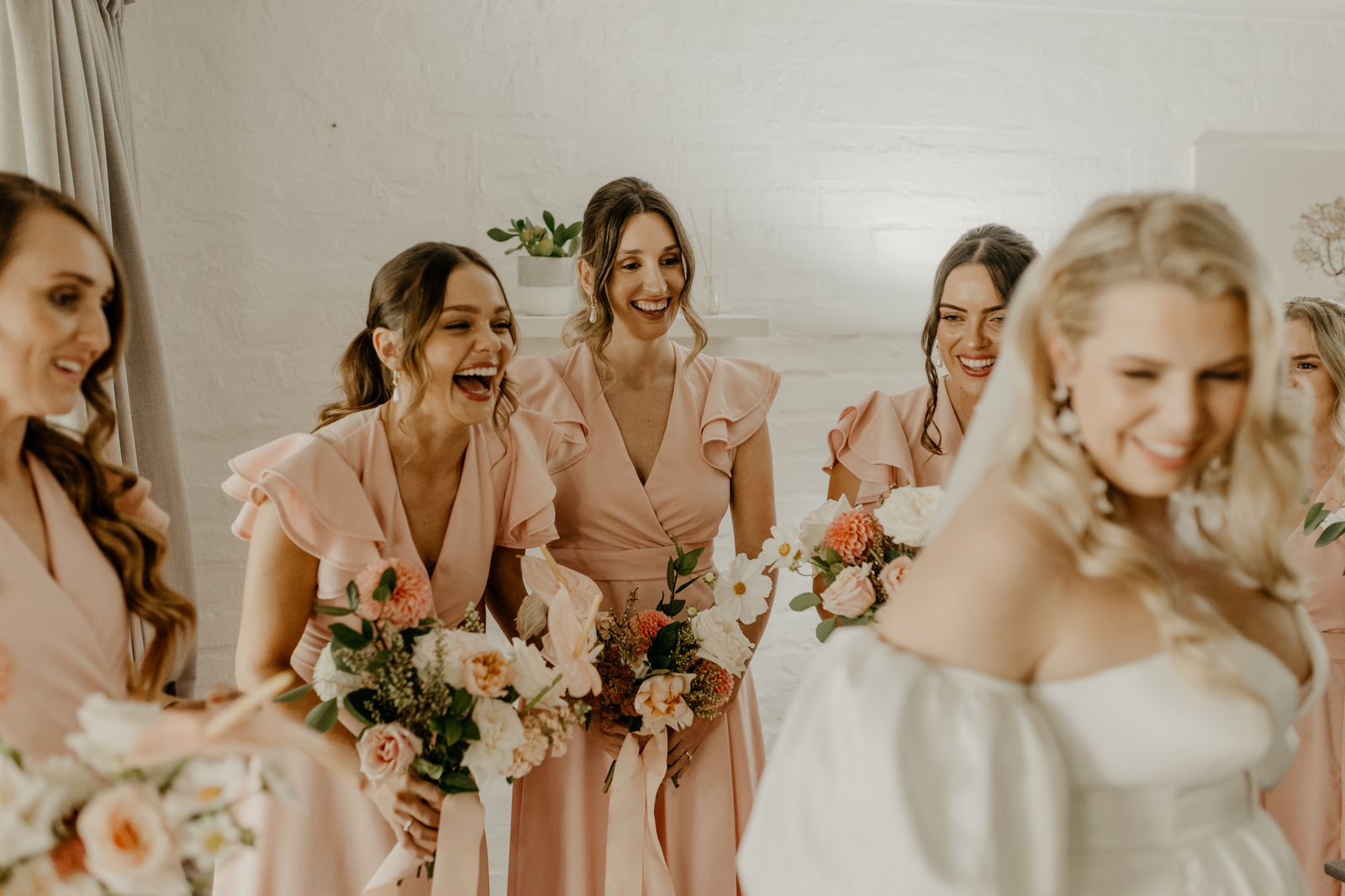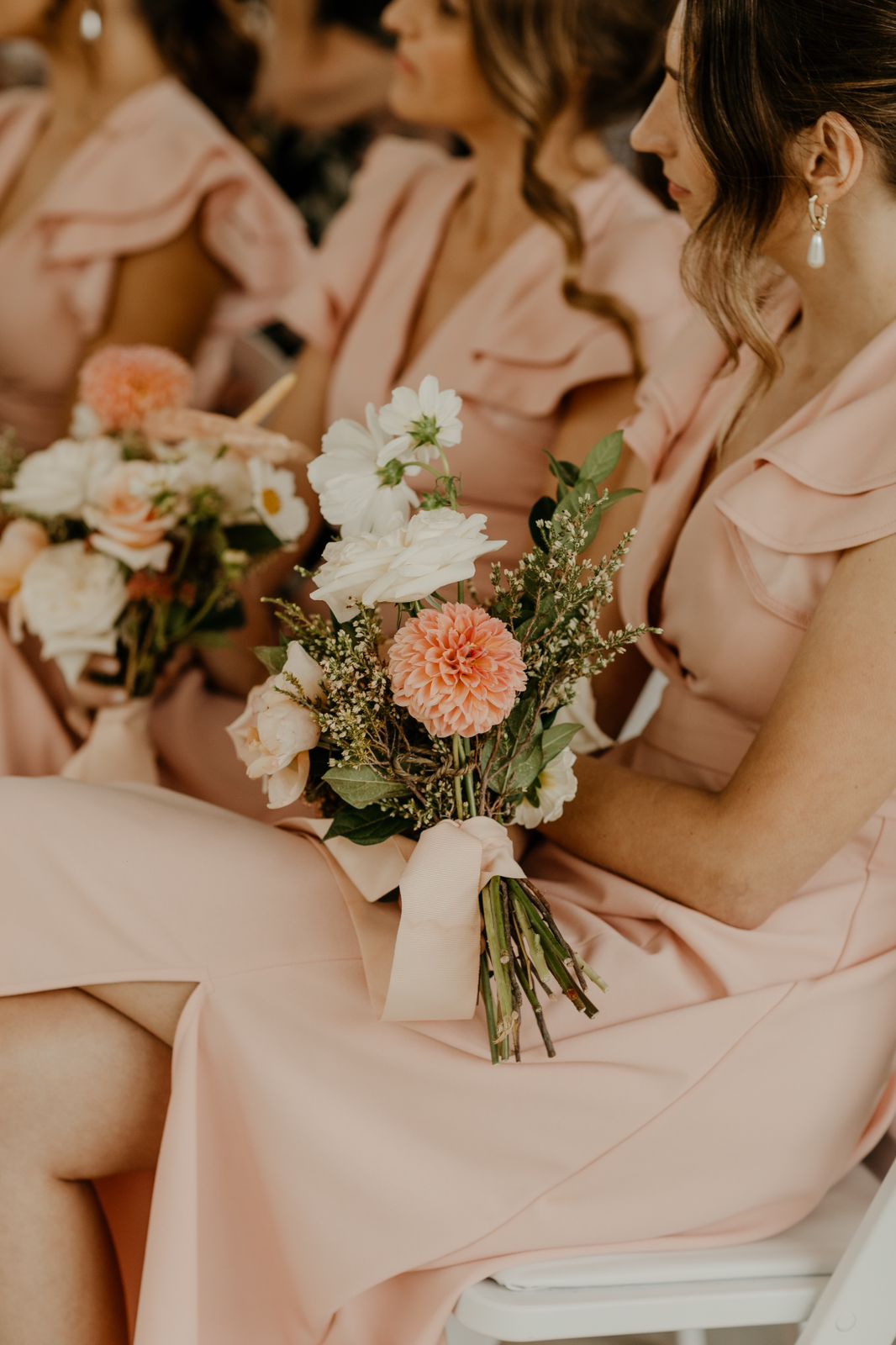 A timeless bridesmaid dress designed with soft peach pink tones that radiate elegance and warmth. Perfect for weddings, formal events, or any occasion where effortless grace is key.