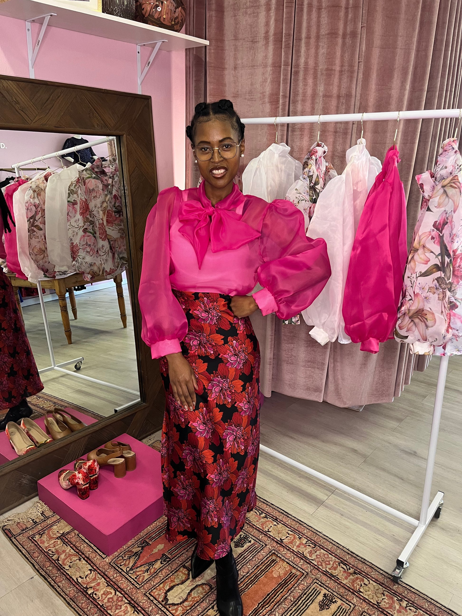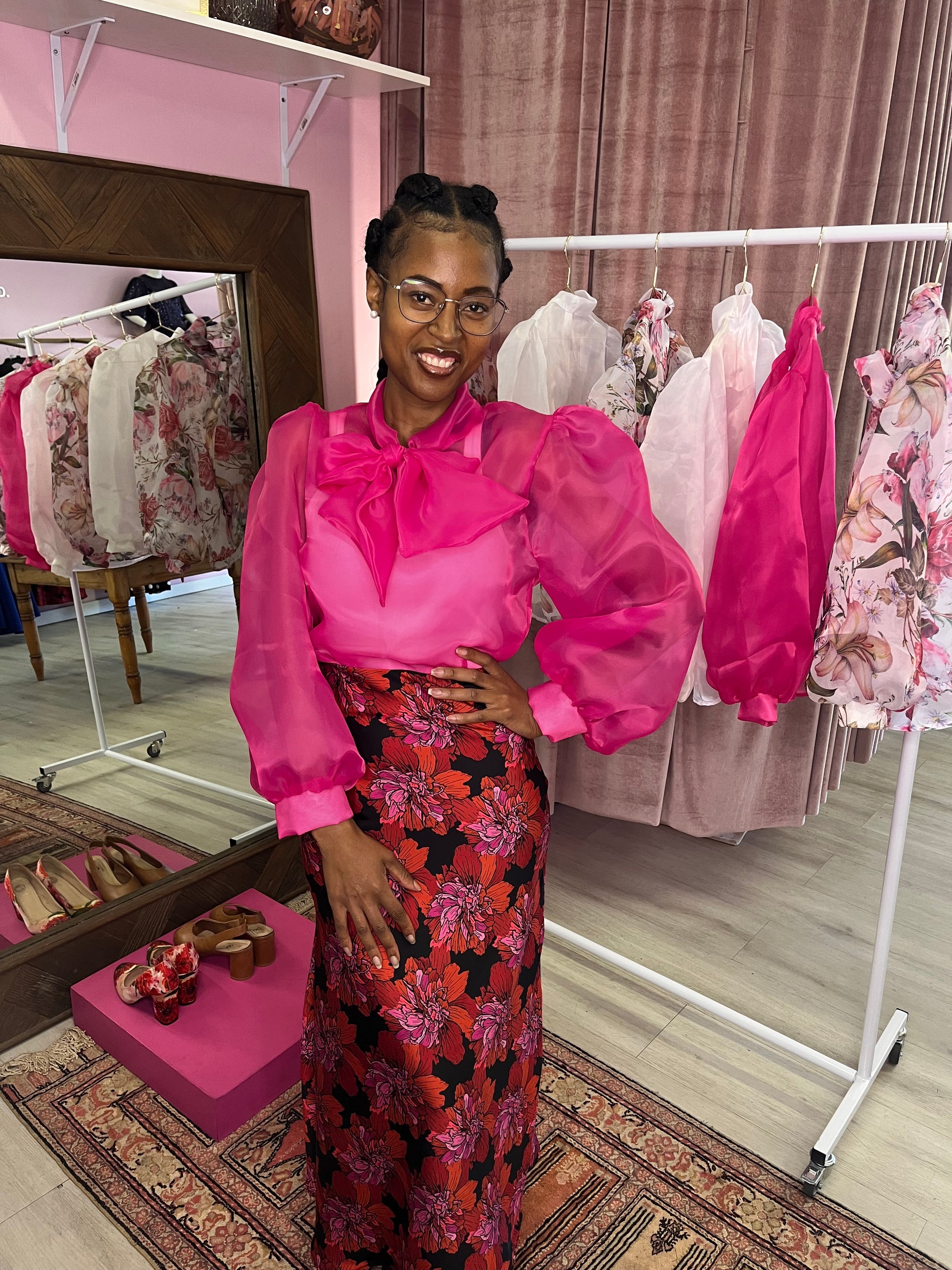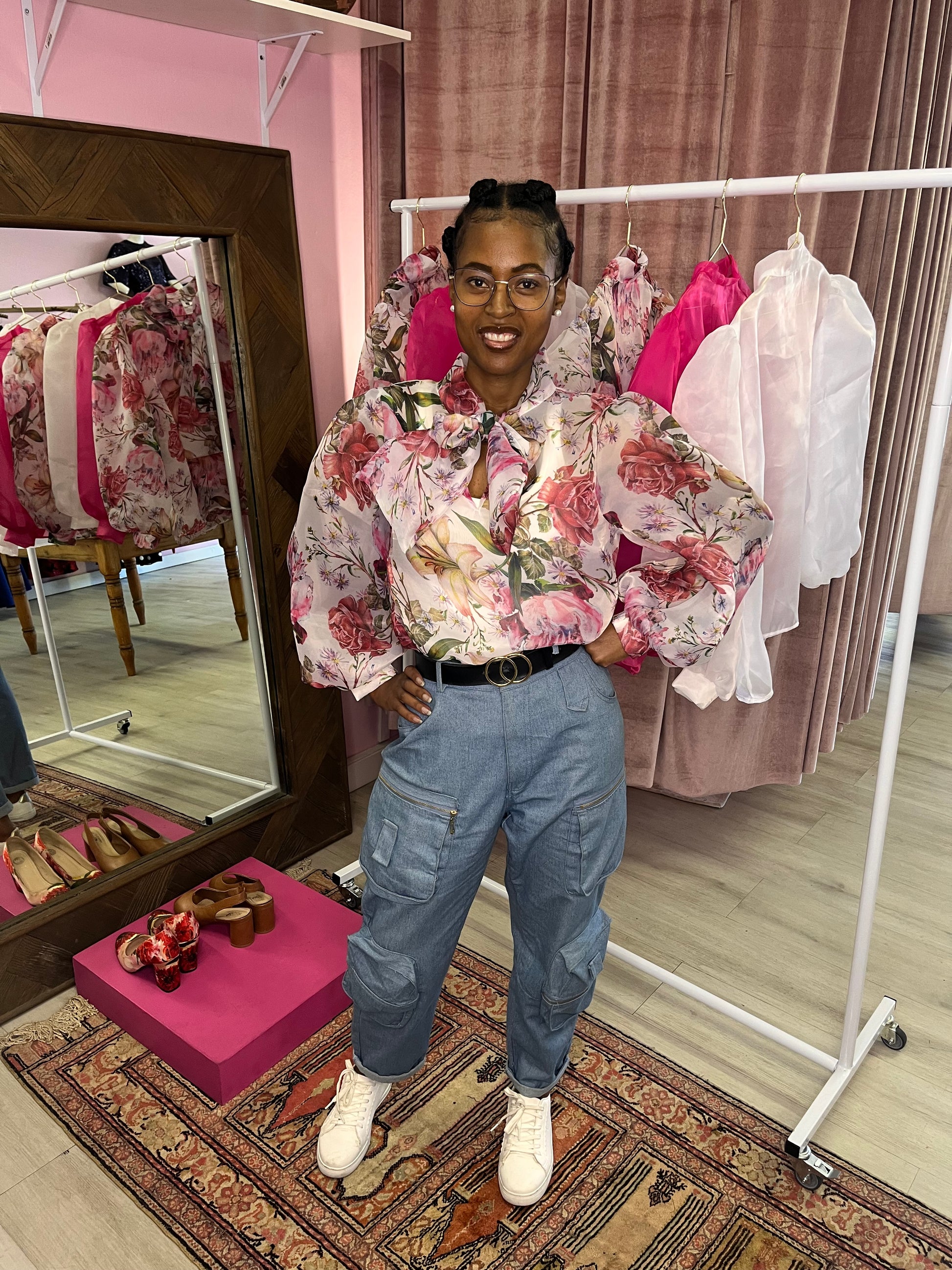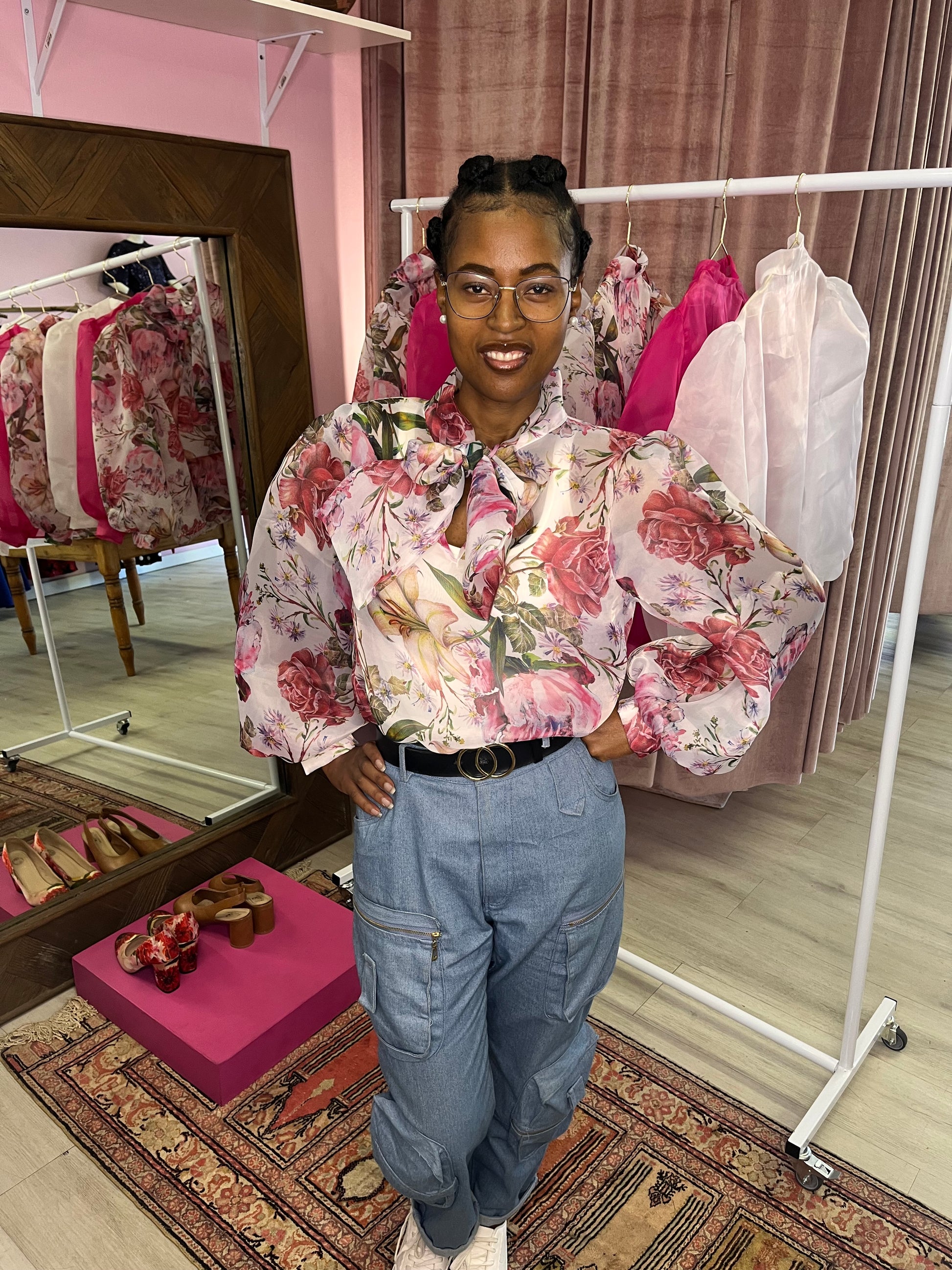 Pair it with tailored trousers for a polished office look, tuck it into a pencil skirt for dinner dates, or wear it with jeans for a chic casual vibe. Available in Floral, Cherise Pink, and White, the Reese Organdy Blouse is your go-to piece for versatile, statement dressing.