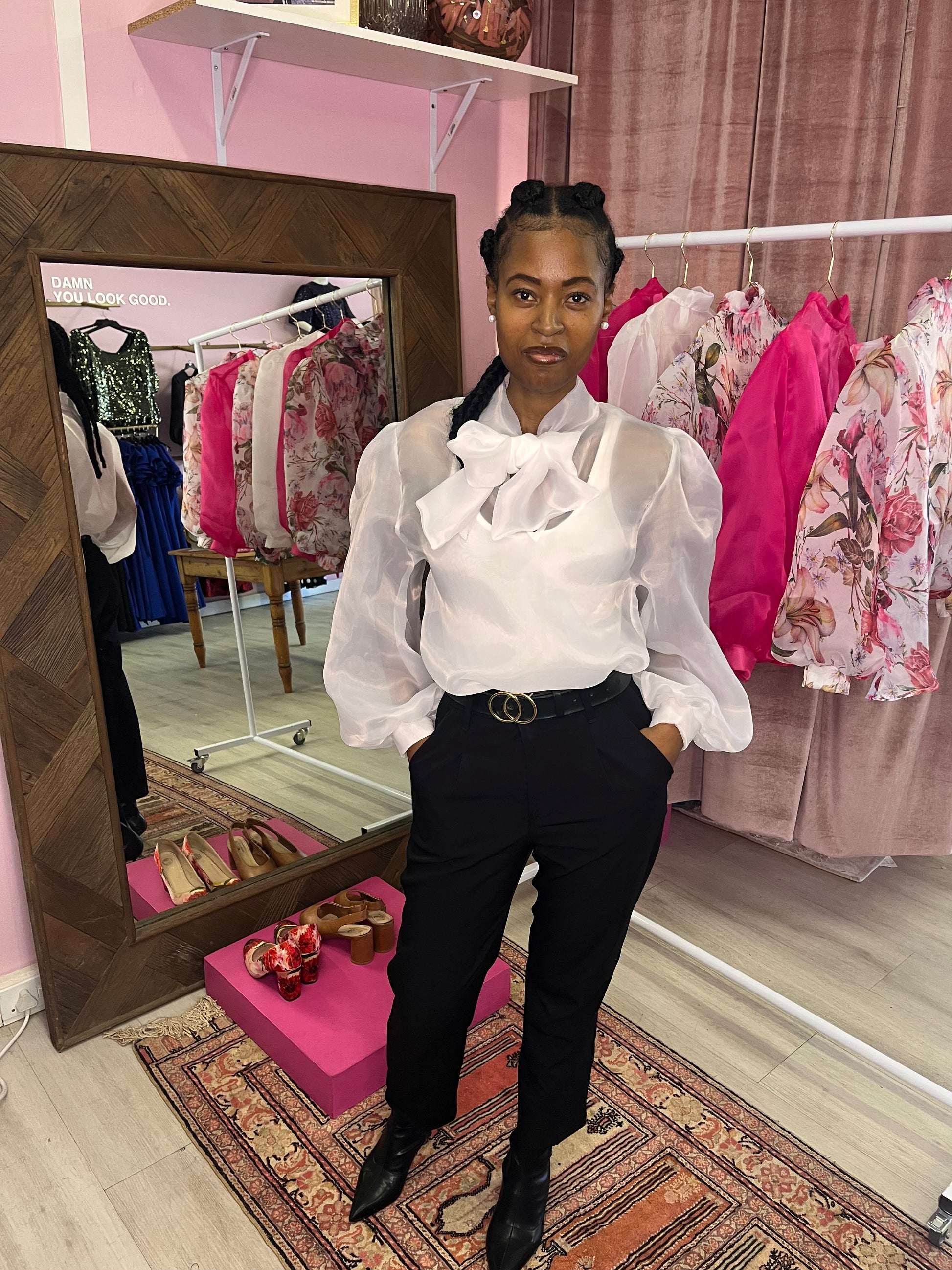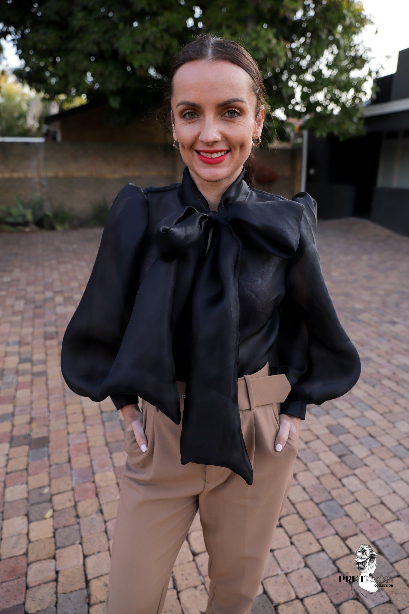 Make an entrance with the Reese Organdy Blouse, designed for women who love expressive, elegant fashion. Its sheer fabric and statement bow tie detail instantly elevate any outfit, blending drama with sophistication.