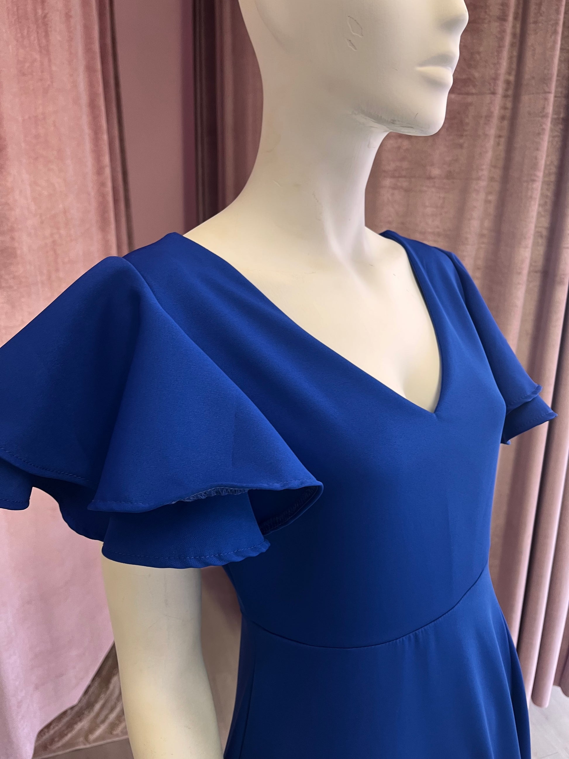 With bold color and graceful design, this dress transforms simplicity into sophistication with a touch of playfulness.